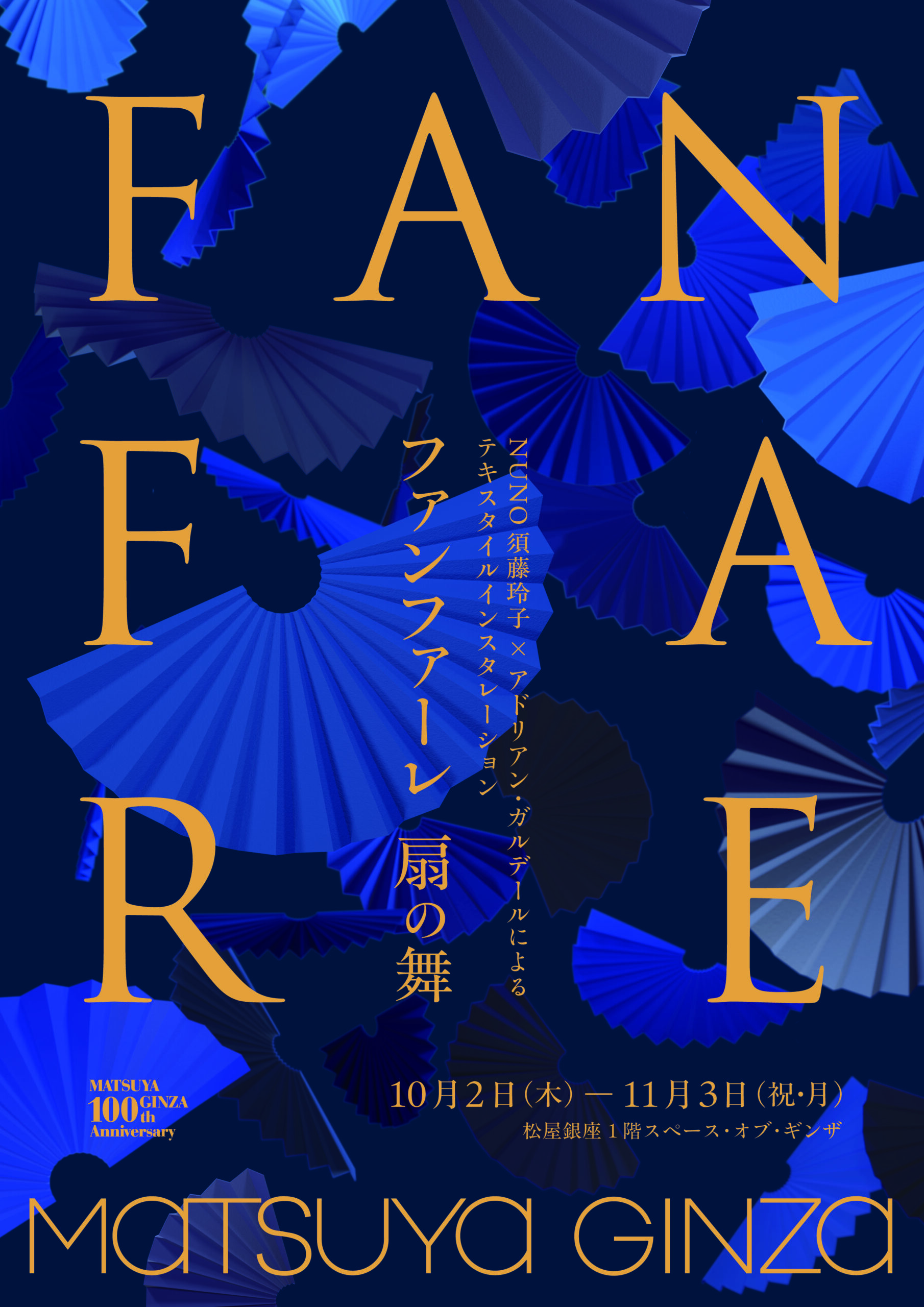松屋銀座は開店100周年を記念し、2025年10月2日(木)から11月3日(祝・月)まで、日本を代表するテキスタイルデザイナーの須藤玲子(NUNO主宰)と、展示デザイナーのアドリアン・ガルデール(Adrien Gardère)による大型インスタレーション作品「 扇の舞」の、東京初となる展示『ファンファーレ 扇の舞』を一般公開します。