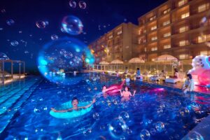 松屋銀座では、この「扇の舞」の東京初となるインスタレーション『ファンファーレ 扇の舞』を一般公開します。祝いの席に欠かせない「すえひろがり」を意味する扇で構成される本作は、100周年の節目に相応しいものです。作品の舞台となるのは館内の7フロアを貫く吹き抜け空間「スペース・オブ・ギンザ」。これまでの「扇の舞」の中でも最大となる約25メートルの高さを活かしたダイナミックな空間表現が見ものです。