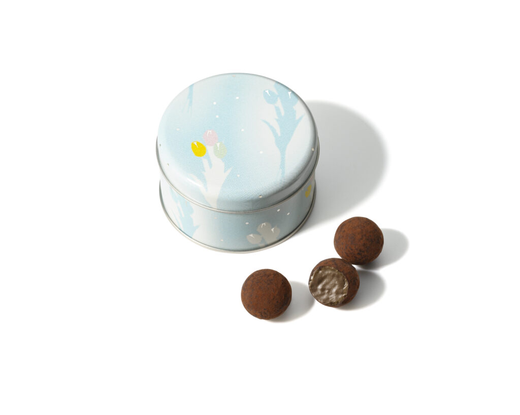オリジナルのミルクチョコレートを使用した口溶けなめらかなトリュフ。マカダミアペーストを合わせることで、ミルクのコクを高め一層深い味わいにしたてました。