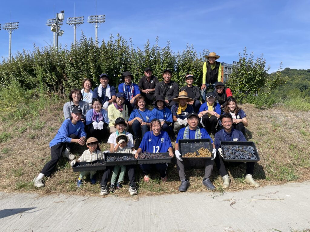 このプロジェクトは2021年、「スタジアムの外構部分で新しいチャレンジをしたい」という岡田武史会長の提案から始まりました。翌年には256本の苗木を植えたものの、土壌の栄養不足や病気、そして昨年は収穫直前にすべての実を鳥にたべられてしまうという、厳しい現実に直面してきました。