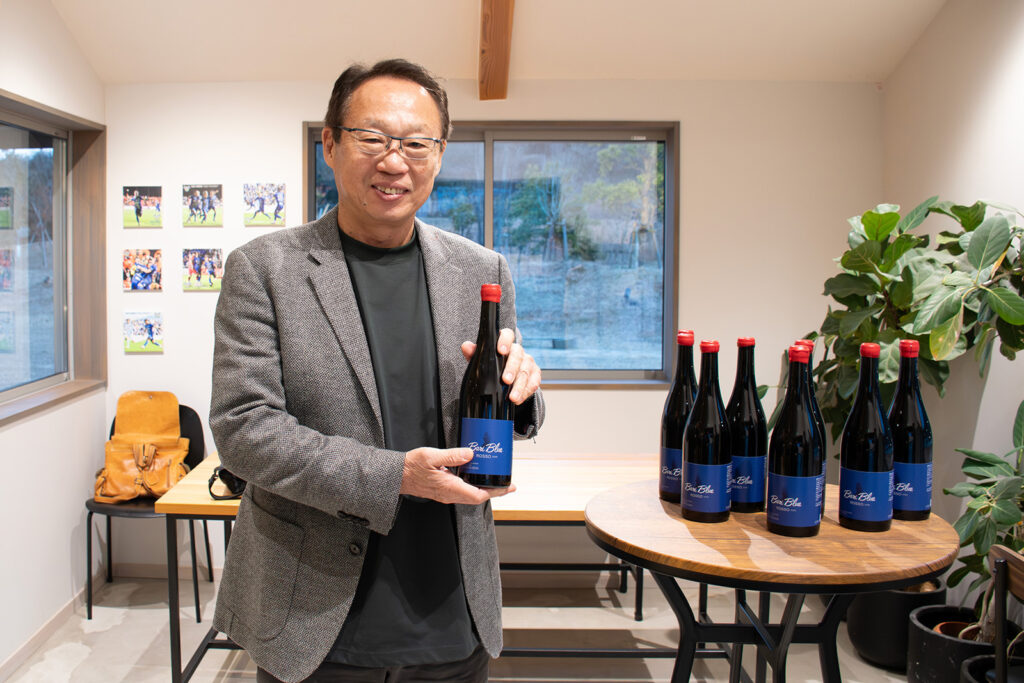 この度、このワインの名称を「Bari Blue(バリブルー)」に決定いたしました。今治を連想する「海」「空」「自然」、そしてクラブカラーをイメージして名付けられました。