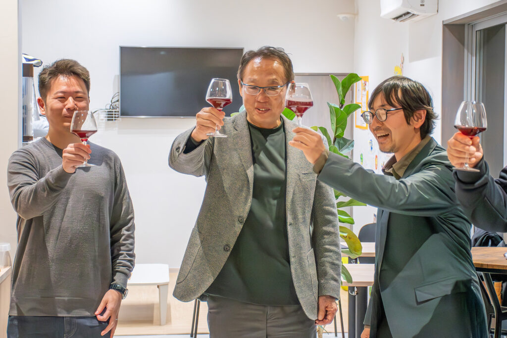 一般販売は行わず、まずは栽培を共にしてきた「ヴィンヤードクルー」の皆様16名をお招きし、スタジアムで初披露・試飲会を2026年2月1日に実施いたしました。
