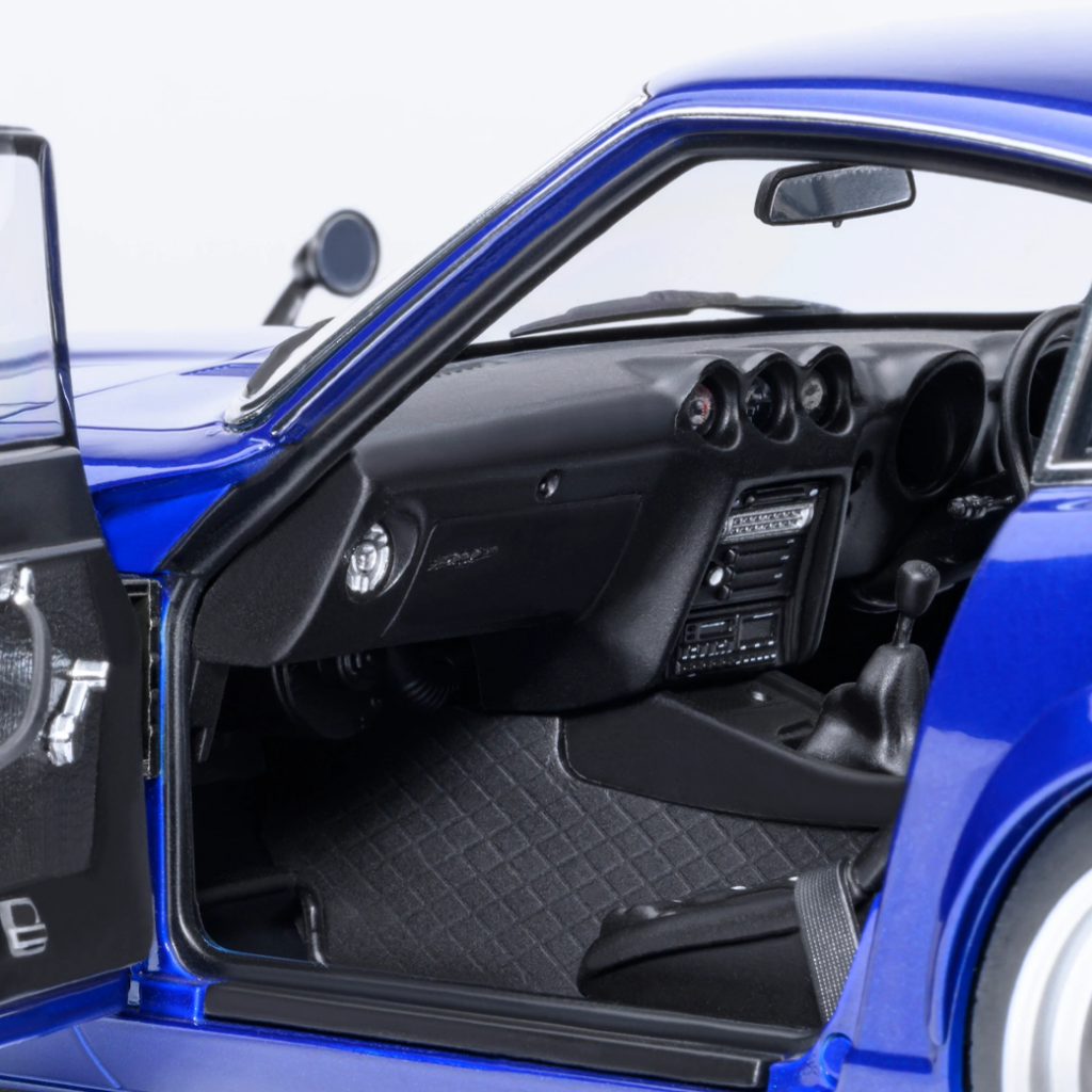 主人公「朝倉アキオ」が駆る「日産 フェアレディZ (S30)」、通称「悪魔のZ」が首都高を舞台にバトルを繰り広げる人気コミック「湾岸ミッドナイト」。「オートアート」では、完全新規金型で1/18スケールの「悪魔のZ」コミック第1巻仕様をモデル化しました。実車のS30型Zを取材し、写真撮影と3Dスキャニングによってボディ形状や細部までを正確に把握。加えて膨大なコミックの検証やチューニングパーツの取材など各所から情報を集め、徹底的にコミック仕様の再現に拘った製品です。
