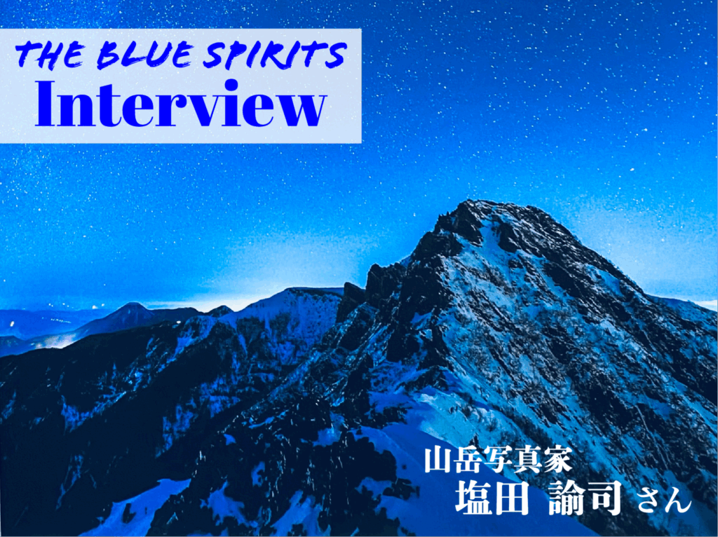 THE BLUE Spirits インタビュー第21回は、山岳写真家・塩田諭司さん。塩田さんの『山稜からの贈り物〜山岳Blue〜』の写真展を観に行ったところから、塩田さんとのお話は始まります。山の話をしている塩田さんは、“純粋さ”そのもの。子どもが目をキラキラさ... -